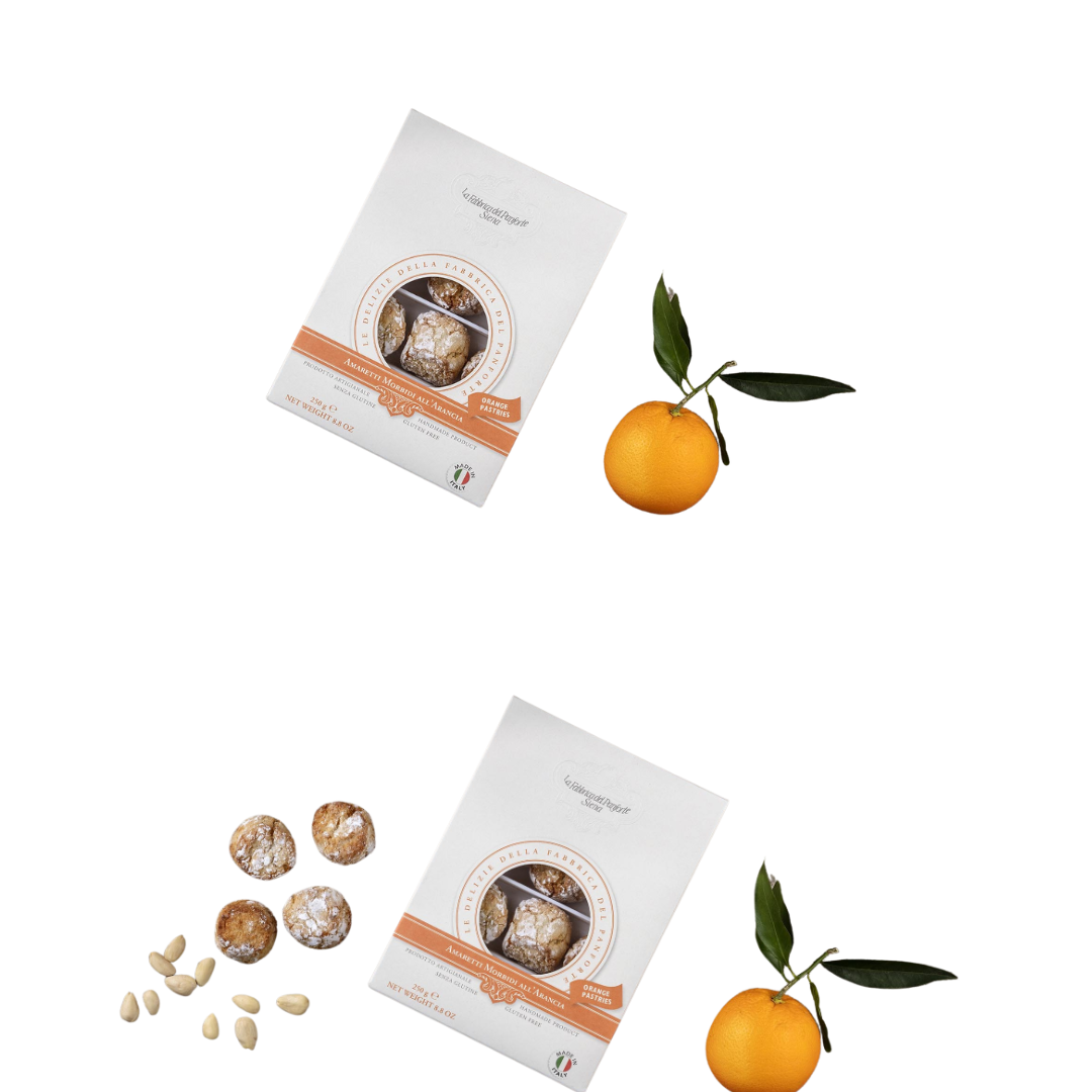 Dolci, profumati e incredibilmente soffici, i nostri Amaretti Morbidi all’Arancia sono una vera delizia per il palato. Realizzati con ingredienti selezionati e naturalmente senza glutine, offrono un perfetto equilibrio tra la dolcezza delle mandorle e la freschezza dell’arancia candita.