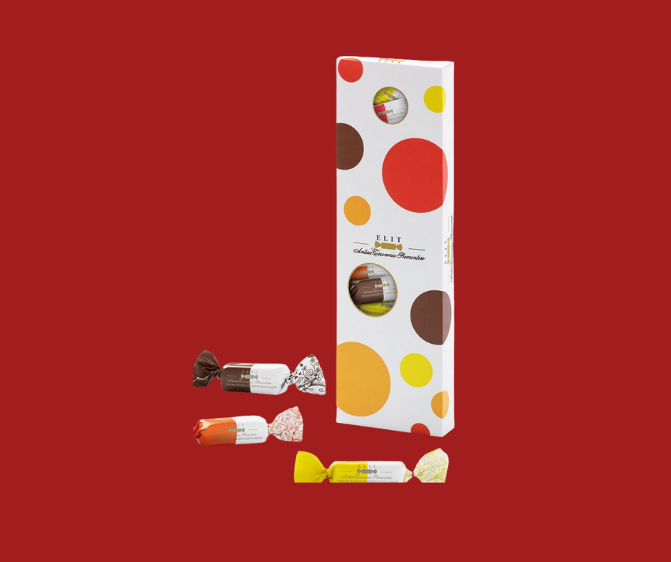 L'Antica Torroneria Piemontese è lieta di presentare una confezione alla moda di assoluta personalità: la degustazione dei Torroncini "Elit". Inoltre, questi meravigliosi torroncini morbidi ricoperti rappresentano l'eccellenza della tradizione dolciaria piemontese in un formato elegante e raffinato.